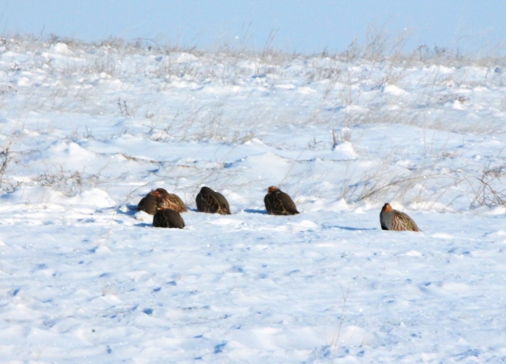 Одними из ценных обитателей заповедника «Черные земли» в это время являются стрепеты. Они остаются зимовать в заповеднике, дожидаясь наступления весны и прилёта своих собратьев с юга. Заповедник представляет собой сухие степи и полупустыни — идеальное убежище для стрепета, который избегает лесов и влажных мест. Зимой, когда основная часть степи покрыта снегом, на территории заповедника часто остаются малоснежные участки, где птицы могут находить пищу (побеги растений, семена, зимующие насекомые).