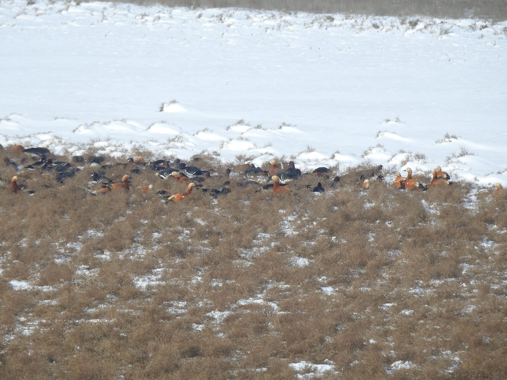 Чем же так важно озеро Маныч-Гудило? Оно представляет собой уникальную экосистему юга России, служит единственным крупным источником воды на огромном пространстве засушливых степей. Озеро Маныч-Гудило — дом для невероятного разнообразия видов и сообществ. Даже зимой жизнь здесь не замирает. Озеро становится убежищем, где птицы находят покой и пищу в зимний период. На его незамерзающих участках и берегах можно встретить целое птичье сообщество: величественных лебедей-шипунов и кликунов, стаи различных уток — крякв, шилохвостей, красноголовых нырков, гоголей, хохлатую чернеть и свиязь, а также редких и занесенных в Красную книгу савок. Здесь отдыхают во время поздних миграций серые, белолобые гуси и краснозобые казарки. За добычей зорко следят хищники: могучий орлан-белохвост, парящие над степью полевые луни, а также зимующие болотные совы и филины. Среди зарослей сухой травы держатся степные, полевые и белокрылые жаворонки, а также камышовые овсянки.