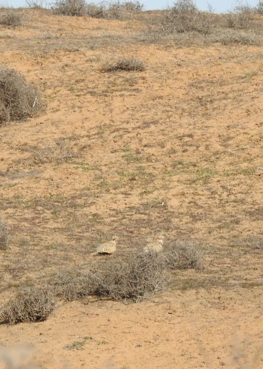 В заповеднике «Черные земли» зафиксировано неординарное для орнитологов событие. На этот раз на фотоаппарат удалось запечатлеть парочку редких обитателей калмыцких степей — чернобрюхих рябков (Pterocles orientalis). В последние 5 лет единичные встречи с ними фиксировались ежегодно. Часто их попросту не успевали сфотографировать — уж больно быстра и редка птица, характерная больше для пустынных экосистем Средней Азии.