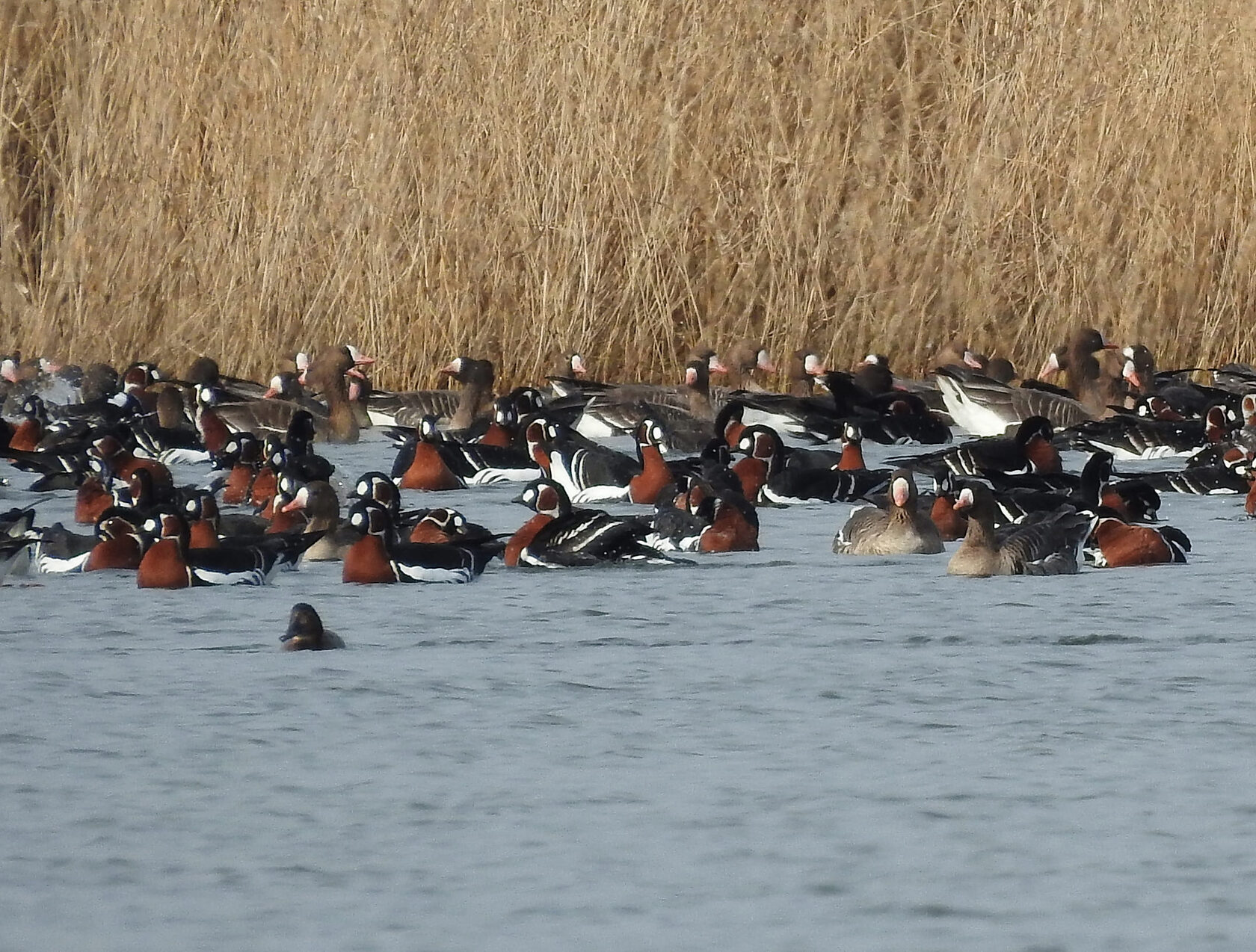 Каждую осень озеро Маныч-Гудило становится домом для десятков тысяч пернатых путешественников. Среди них можно выделить журавля-красавку и серого журавля, чьи величественные стаи используют окрестные поля вокруг озера как место для отдыха во время осенней миграции, чтобы набраться сил перед сложным перелетом. Особую ценность представляют редкие и исчезающие виды, яркий пример — краснозобая казарка — небольшой арктический гусь, эндемик России, для которого Маныч-Гудило является критически важной миграционной остановкой на пути с мест гнездования в тундре к зимовке в Европе. В весенне-осенний период здесь также концентрируется значительная часть мировой популяции белолобого гуся и пискульки. А для кудрявого и розового пеликанов озеро является гнездовой территорией, покидая которую осенью они отправляются к своим южным зимовкам. Не остаются в стороне и различные кулики и утки: сотни тысяч турухтанов, ходулочников, веретенников, шилоклювок, чирков и других видов находят здесь столь необходимые им пищу и отдых.
